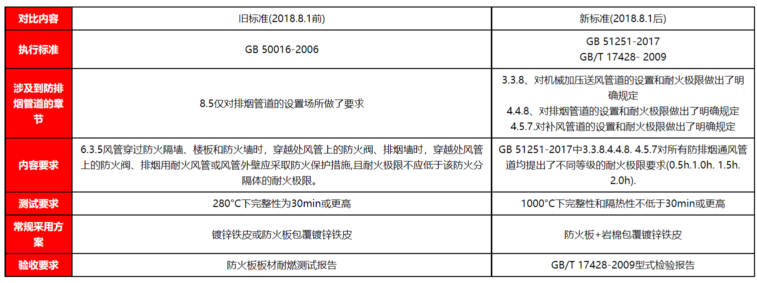 2. 保证风管具有一定耐火极限是排烟系统持续工作的必要基础。因此我们国家在2017-11-20最新发布的《建筑防烟排烟系统技术标准》GB51251-2017中对耐火极限提出了明确的要求: