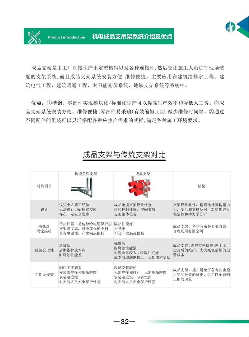 优点:①槽钢、零部件实现模块化/标准化生产可以提高生产效率和降低人工费。②成品支架系统安装方便、维修便捷(零部件易采购)有效缩短工期,减少维修时间等。③通过不同配件的组装可以灵活搭配各种应生产需求的式样,满足各种施工环境要求。